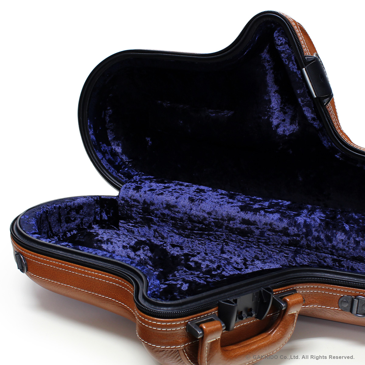 強度を維持しつつ軽量、コンパクトを実現したイタリア製マルコ・マギのサックス用ケースです。ネック収納部は無く、付属にネックポーチを使用してベルにネックを収納するタイプとなっています。ケース側面には小物類を収納できるポケットが付いています。持ち運びは手提げとショルダー、リュック式の3Wayタイプで、開閉はジッパーとキーロックの併用タイプとなっています。対衝撃性など含め軽量なだけでなく強度も両立したケースです。