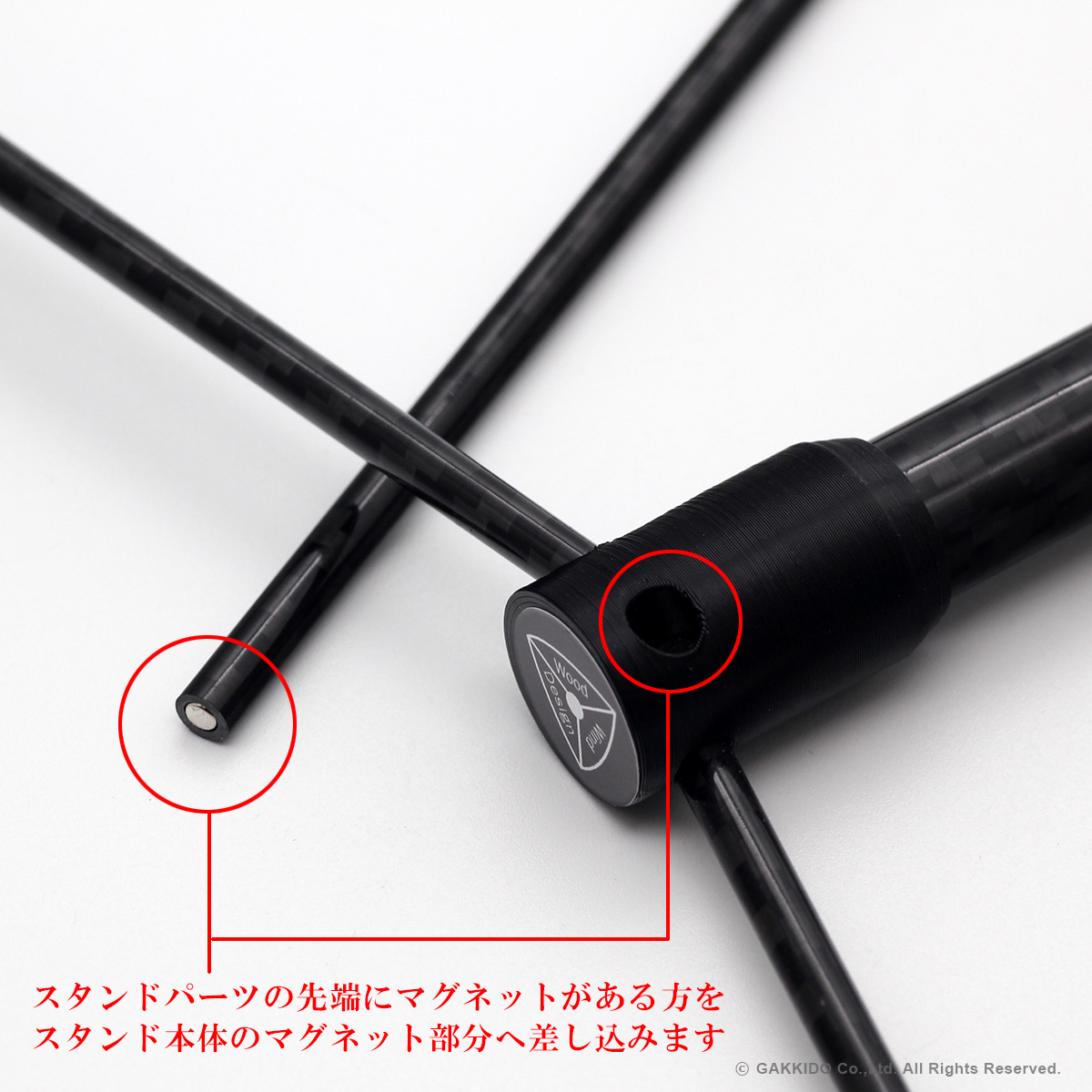 ※使用されているマグネットは適度な磁力を持っていますので、通常の使用では脚パーツが不意に外れることはありませんが、ご使用の際には脚パーツがスタンド本体の差し込み口にしっかりセットされていることをご確認の上、ご使用ください。