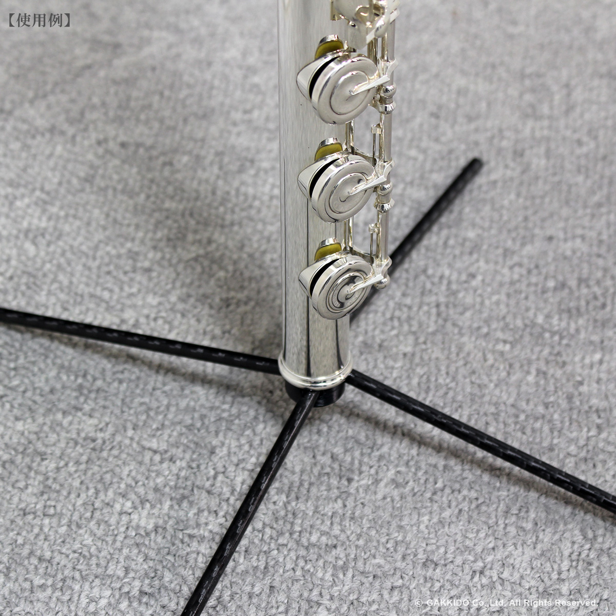 また、収納時のサイズもコンパクトですので、H管フルートであれば足部管にスタンドを入れたままケースに収納することもできます。