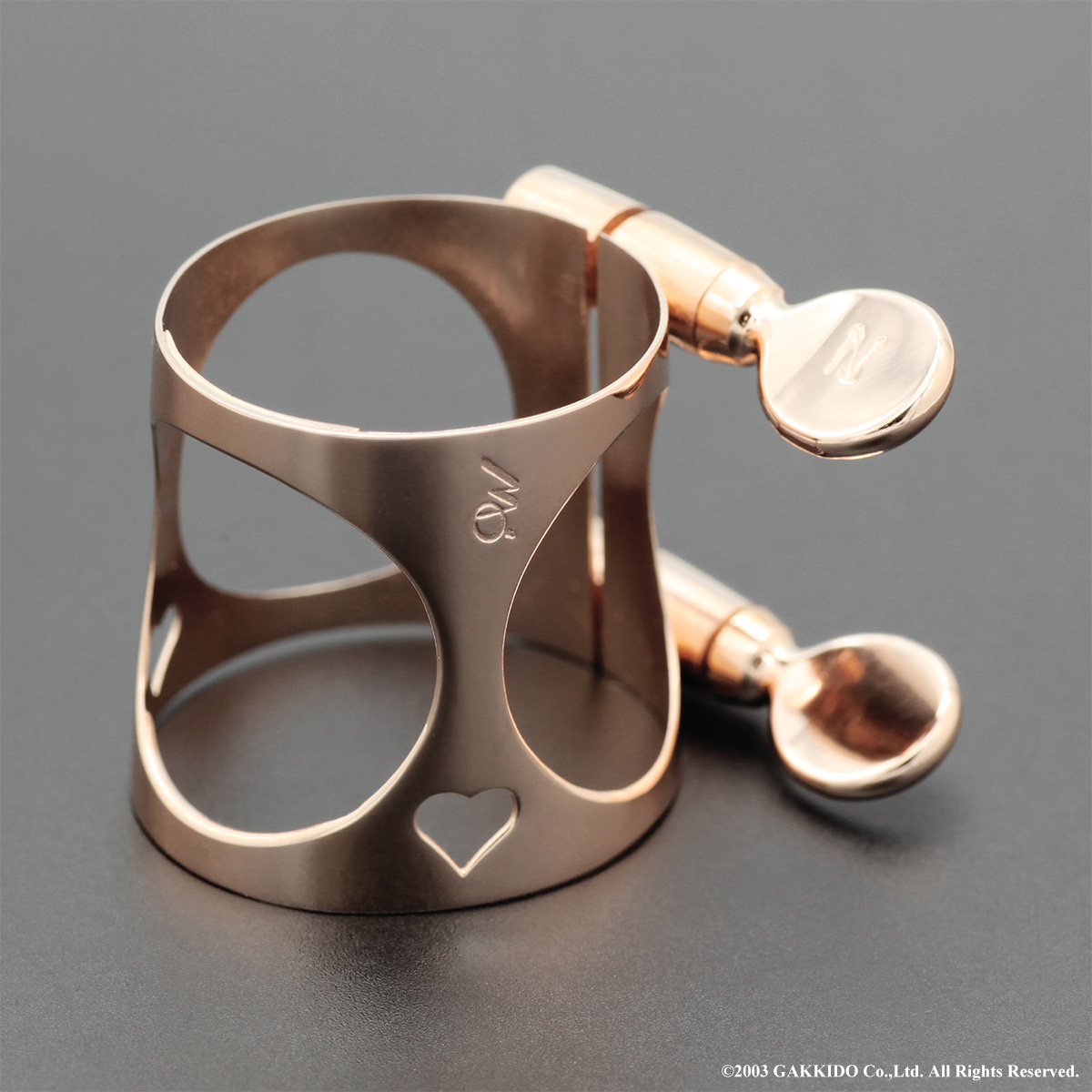 モモリガ B♭クラリネット用リガチャー 洋白製 横型 Babyハート付き ピンクゴールドメッキ仕上げ