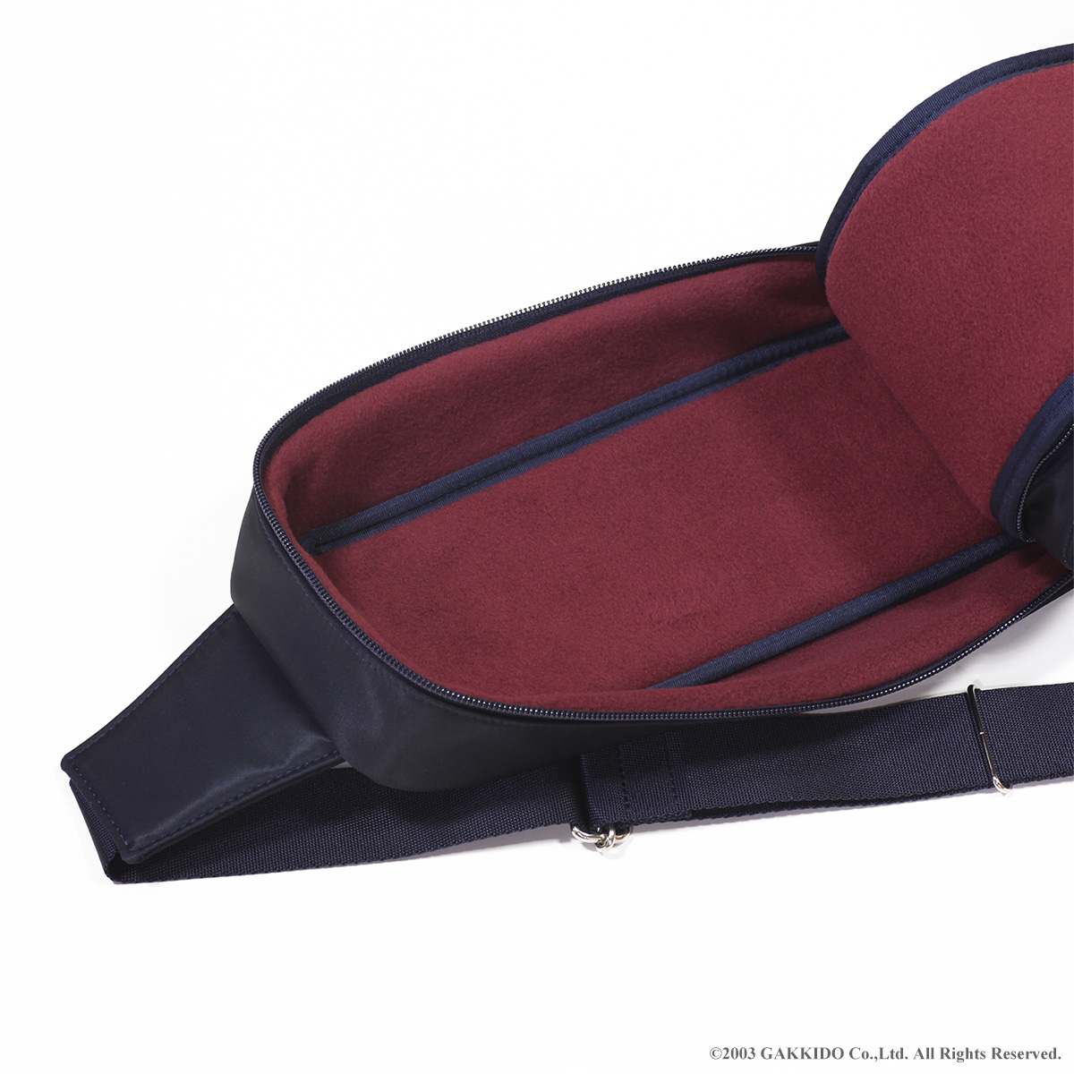 また、外側にはピッコロ用の収納部の他、スマートフォンやパスケース、筆記用具など、日常の細かなアイテムをすっきり収められる小物用ポケットを配置。実用的ながらも無駄のないレイアウトが、よりスマートな印象を与えます。