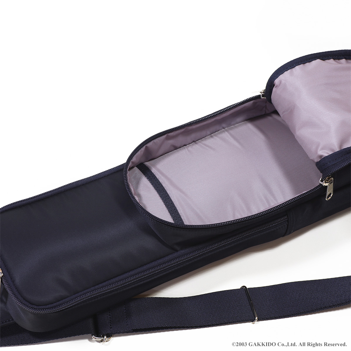 日々の移動やレッスン時に扱いやすいワンショルダータイプは、フルートを収納するメイン収納部に加え、外側にピッコロ用の収納部と小物用ポケットを備えたモデルです。